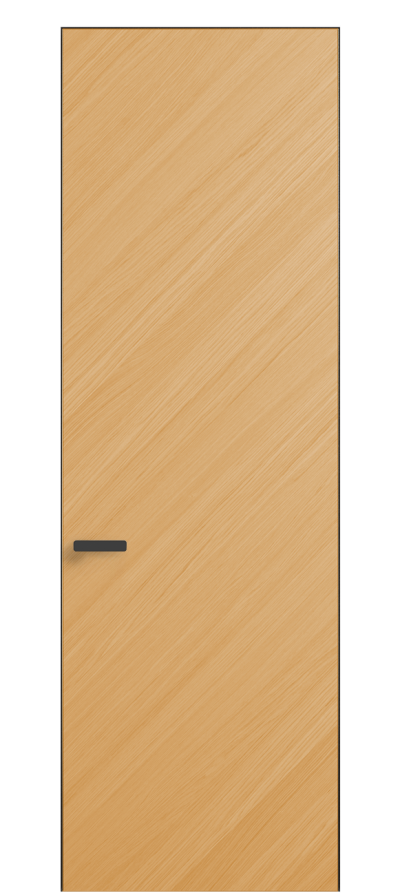Полотно Рифт в скрытом алюминиевом коробе становится полноценным элементом декора. В коллекции представлено 9 моделей дверей в высоте до 3 метров. Рисунок раскладки шпона варьируется от простого до сложного. «Рубашка» для каждого полотна подбирается вручную по цвету, текстуре и фактуре.