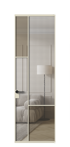 АЛПЛ041.13 Алюминий бежево-серый Декоративное стекло с сеткой "Mesh silver", триплекс, 6 мм + Прозрачное бронзовое стекло, триплекс